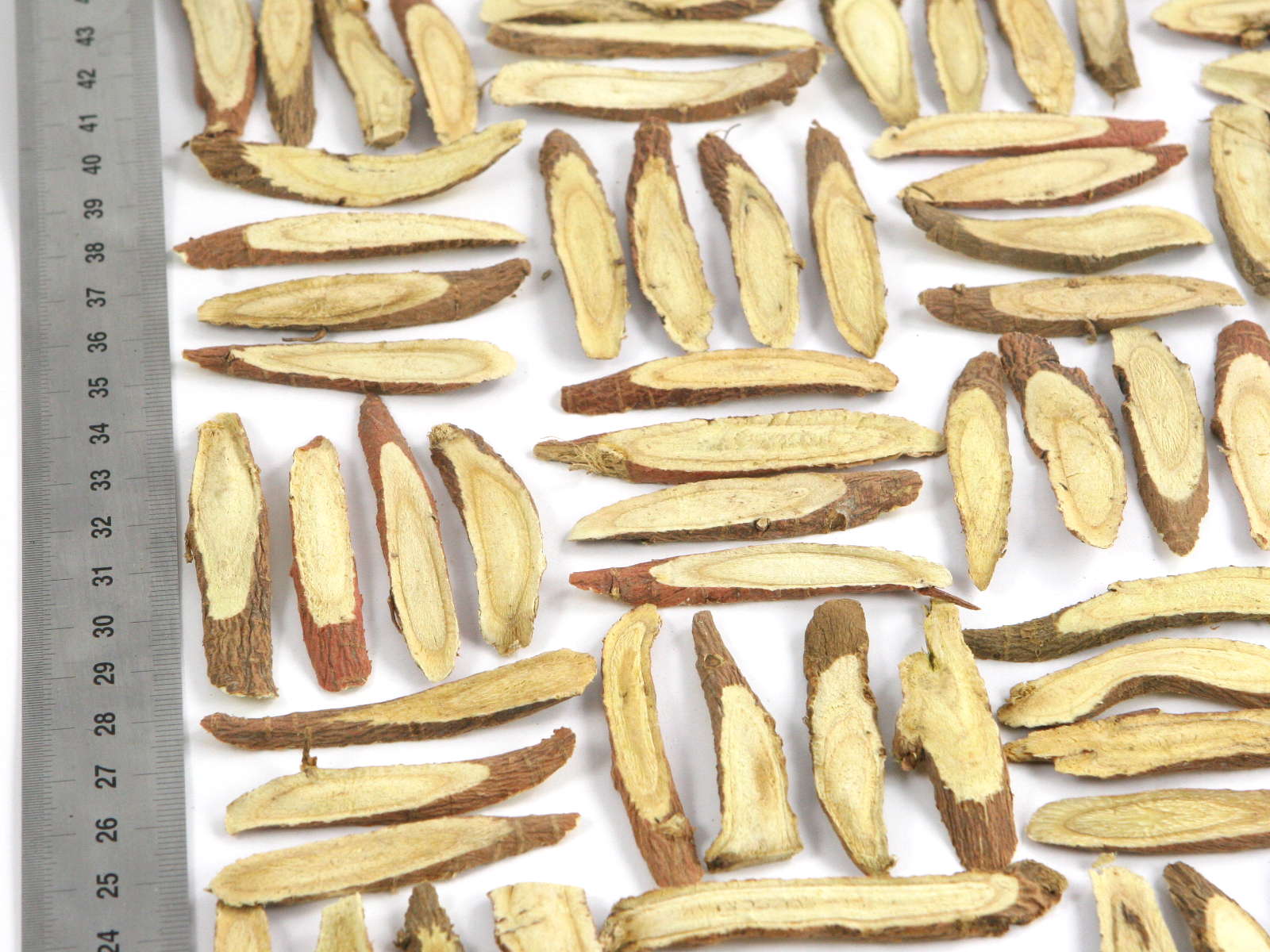 Lékořice čínská TaiwanTCM je oddenek lékořice čínské (Glycyrrhiza uralensis) – léčivé rostliny používané v mnoha receptech TČM. Zboží pochází z oddenků patřičné tloušťky a jeho obsah účinných látek lze poznat i chuťově.
