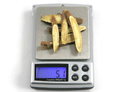 Zde nabízený plátkovaný oddenek představuje standardní vysokou kvalitu této rostliny používané v TČM receptech na Tchajwanu. V malém množství lze rostlinu přidat i do polévek a vývarů asijského typu, kde se uplatní její sladká chuť i povzbuzující vlastnosti. Neužívat trvale.